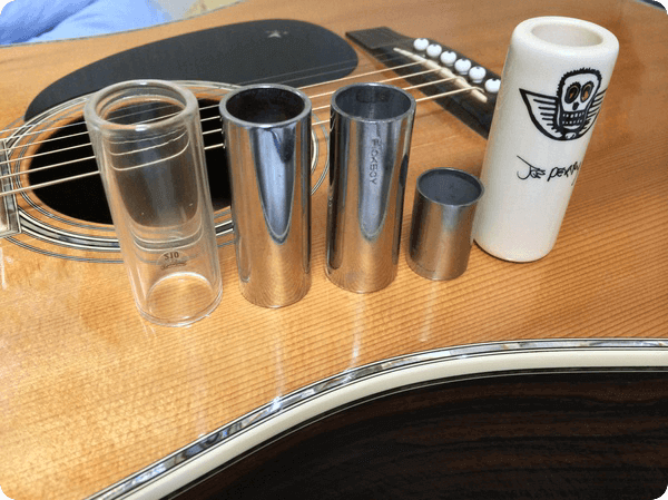 スティール・ギターや、ブルースには欠かせないボトルネック奏法。スライドバーは金属やガラス、陶器など材質により音質が異なるので色々ためしてみましょう。