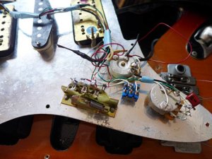 久しぶりのストラトキャスター改造です。このストラトキャスター(Crews Bottom’s UP)は、もともとSSH仕様のギターでしたが、HSHに改造し、さらにミニスイッチを取り付けて少し変わった配線にしていました。
