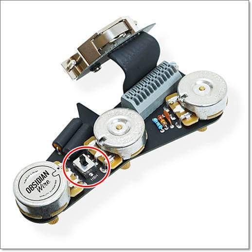 基板上に設けられたモードスイッチを使用してHSS, HSH, SSS, HHHのピックアップ配列に対応したモードを選択できます。