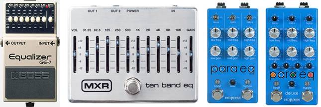 使用ギターやアンプの設定にもよりますが、BOSSのイコライザー(GE-7)でも800hzあたりを中心に持ち上げてあげるとそれらしいサウンドが得られると思います。